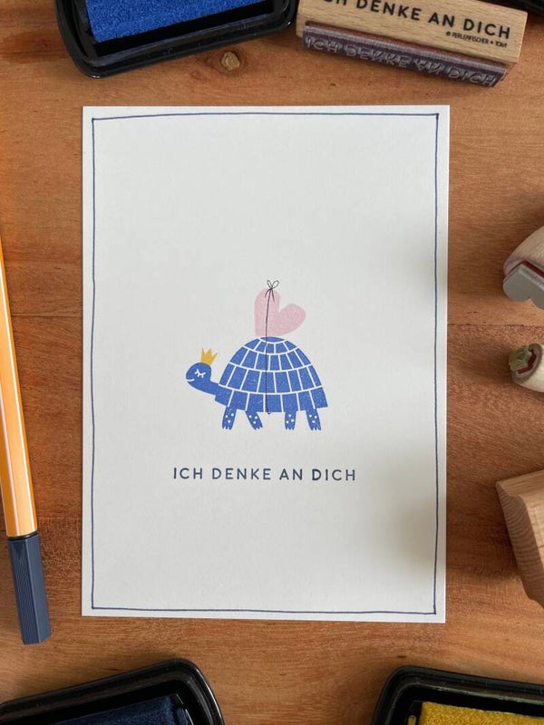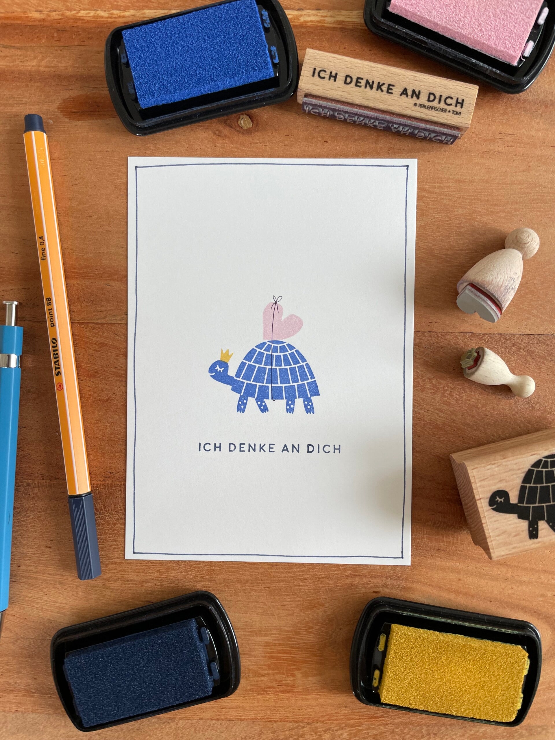 Verleihe deiner Nachricht eine persönliche Note mit dieser handgestempelten Karte. Jede ist ein Unikat und wurde liebevoll mit hochwertigen Materialien der Marke Perlenfischer gestaltet.