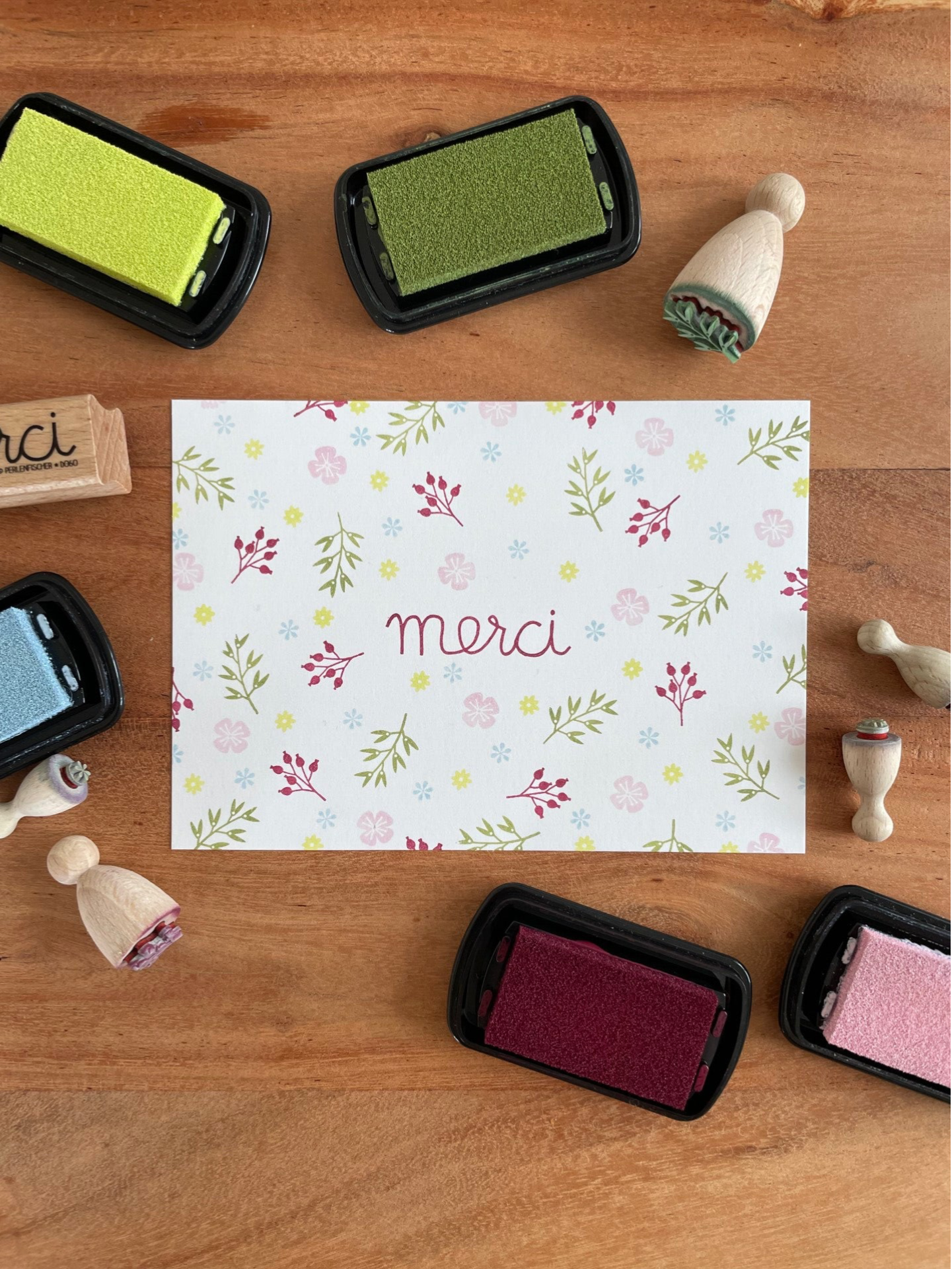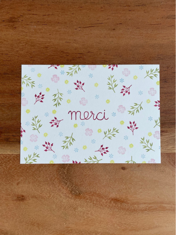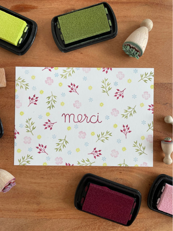 Handgestempelte Grusskarte - Blumiges Merci
