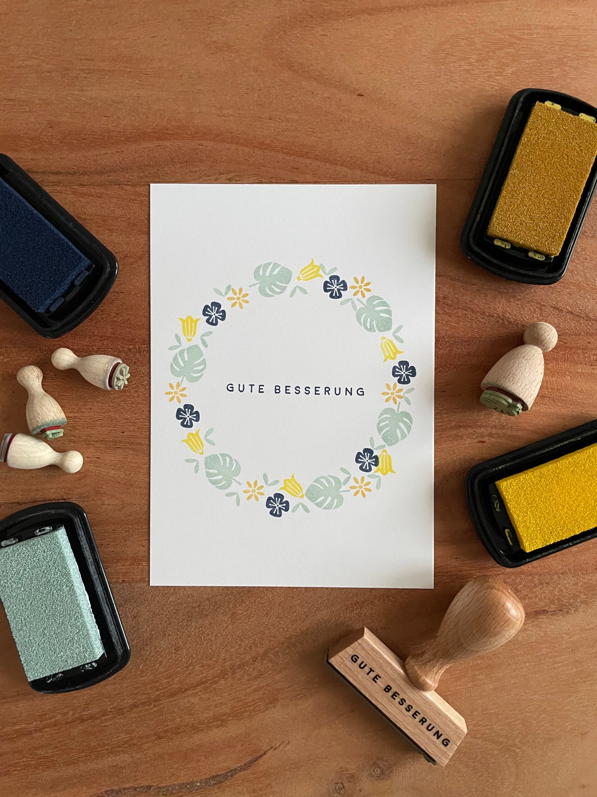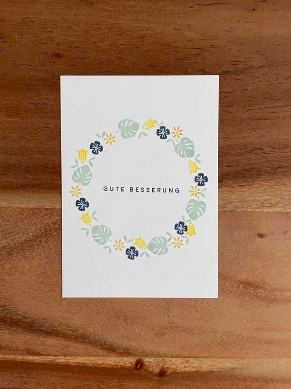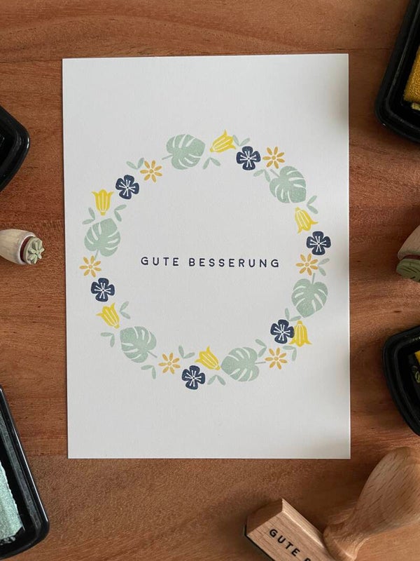 Handgestempelte Grusskarte - Gute Besserung