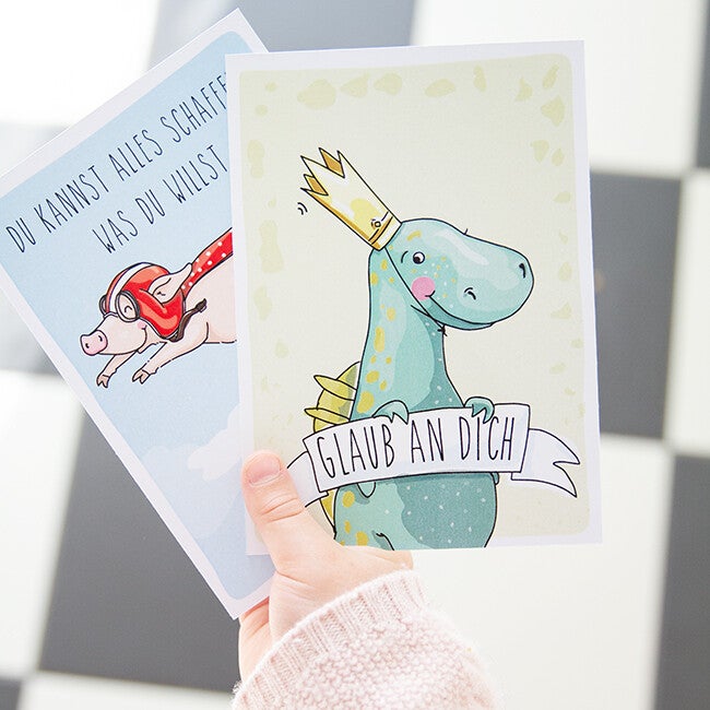 Mut-mach Karten als Set zu 30 Karten. Manchmal muss man einfach Mut machen: Vor der Klassenarbeit, zum Sportfest oder wenn das erst Mal alleine bei Oma übernachtet wird. "Du kannst alles schaffen, was Du willst!" Macht Euren Kindern Mut oder wertet tolle Leistungen mit unseren bunten, fröhlichen Karten.