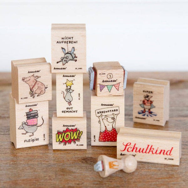 - Hochwertiges Flexogummi auf matt lackiertem Buchenholz (PEFC-zertifiziert, aus nachhaltiger Deutscher Forstwirtschaft), Stempelkissen sind nicht enthalten