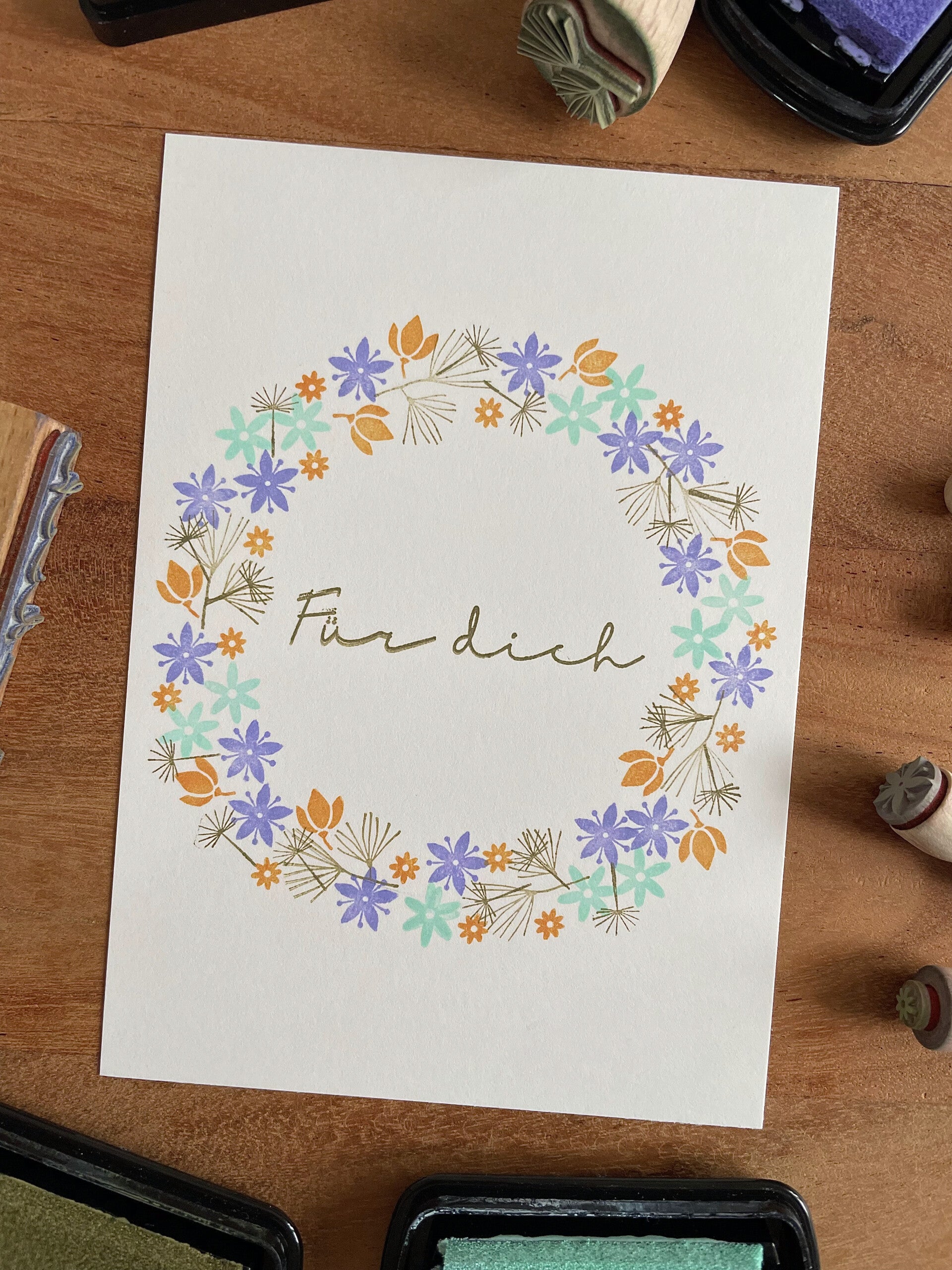 - Lieferumfang: Eine handgestempelte Karte inkl. Umschlag