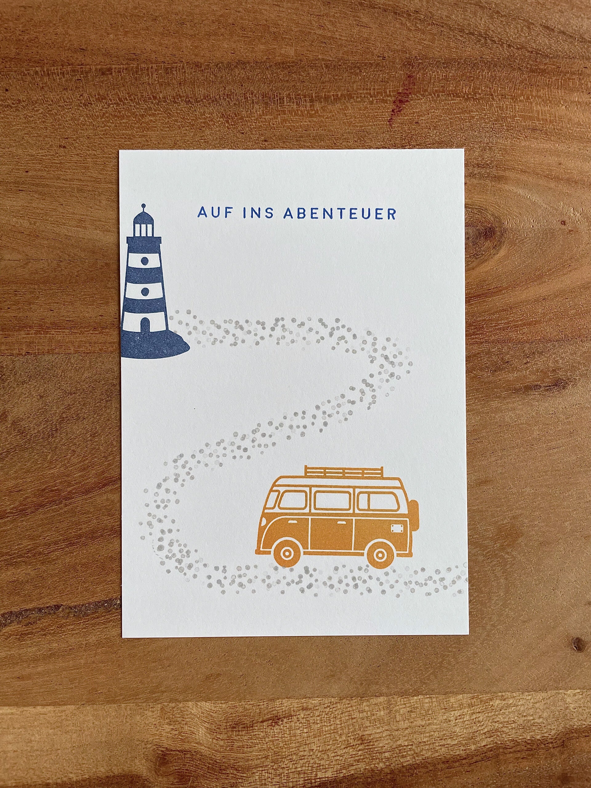 Handgestempelte Grusskarte - Auf ins Abenteuer