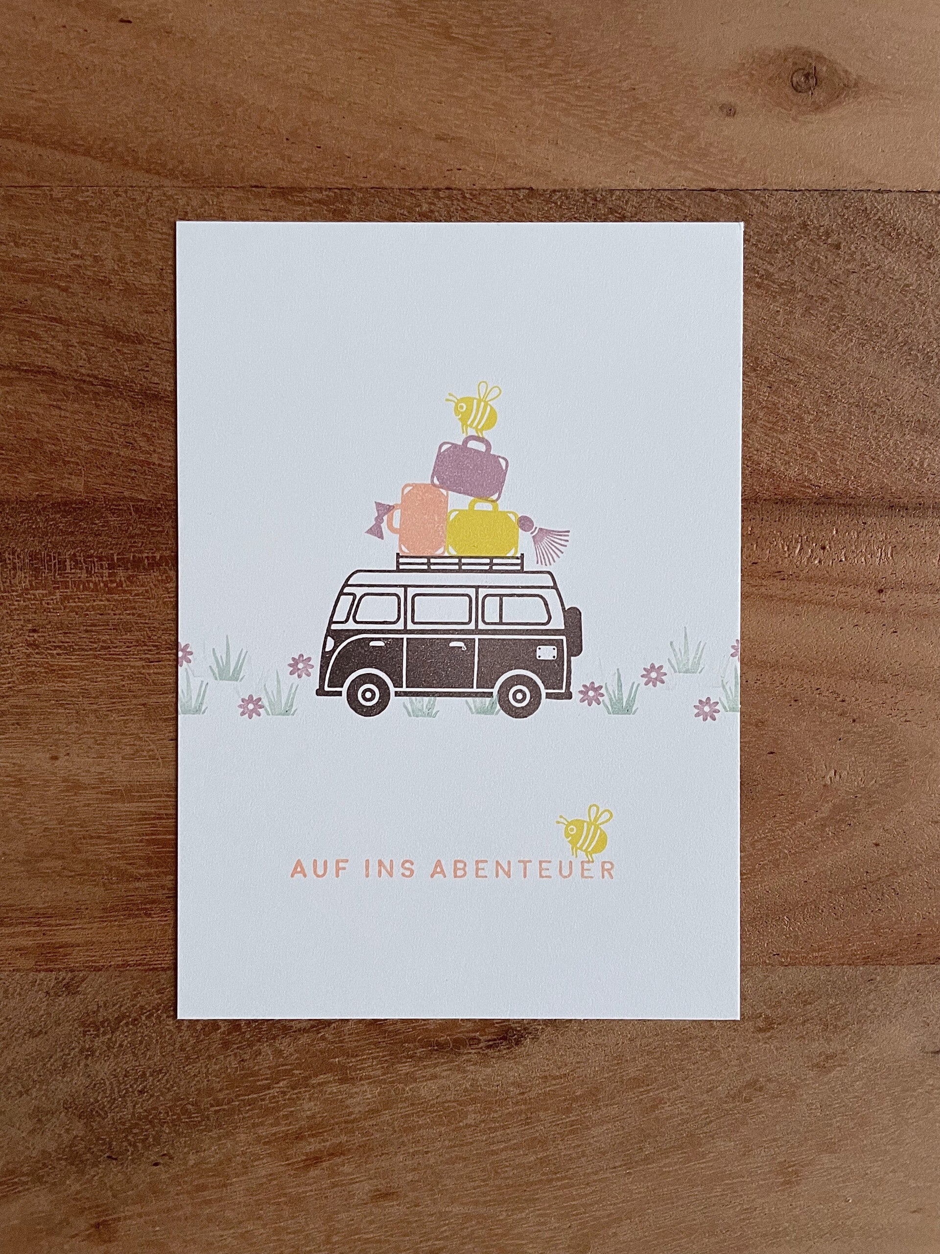 Handgestempelte Grusskarte - Auf ins Abenteuer