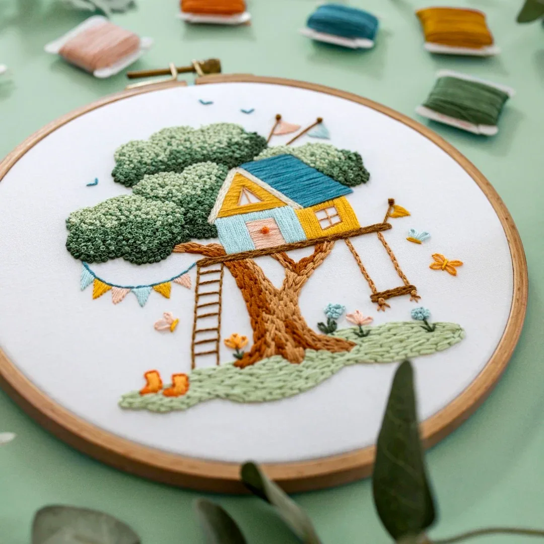 Mit diesem Stickset gestaltest du eine lebendige Gartenszene mit einem Baumhaus. Du vertiefst deine Stickkenntnisse und lernst fortgeschrittene Techniken, um das Motiv mit viel Liebe zum Detail zum Leben zu erwecken. Das Set ist ideal für alle, die schon erste Erfahrungen gesammelt haben und ihre Fähigkeiten erweitern möchten. Geniesse deine kreative Auszeit und entdecke neue Herausforderungen.