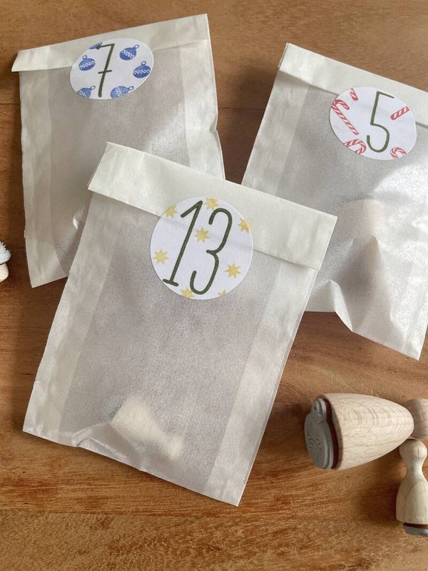 abgefüllt in kleine Säckchen mit von Hand gestempelten Zahlenetiketten