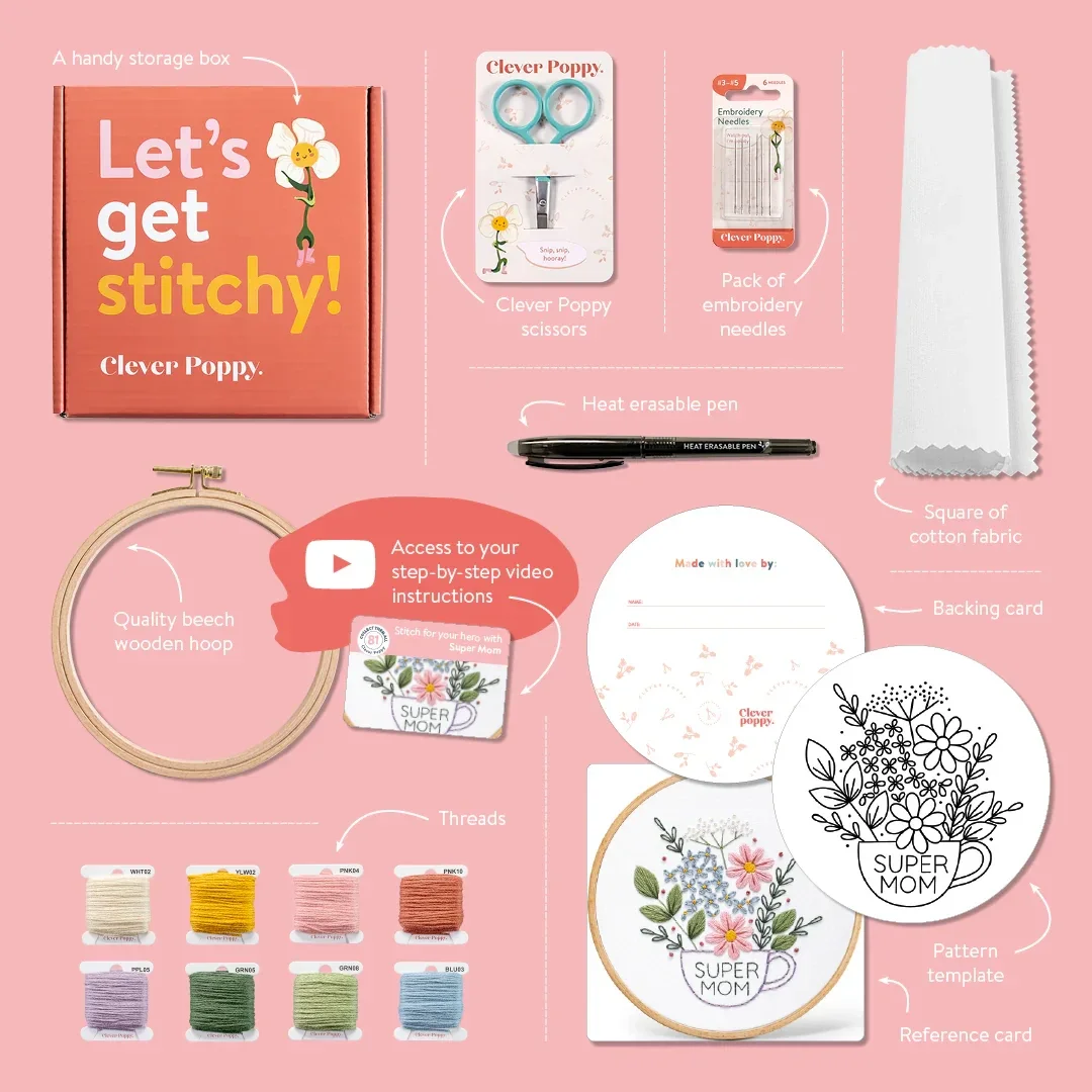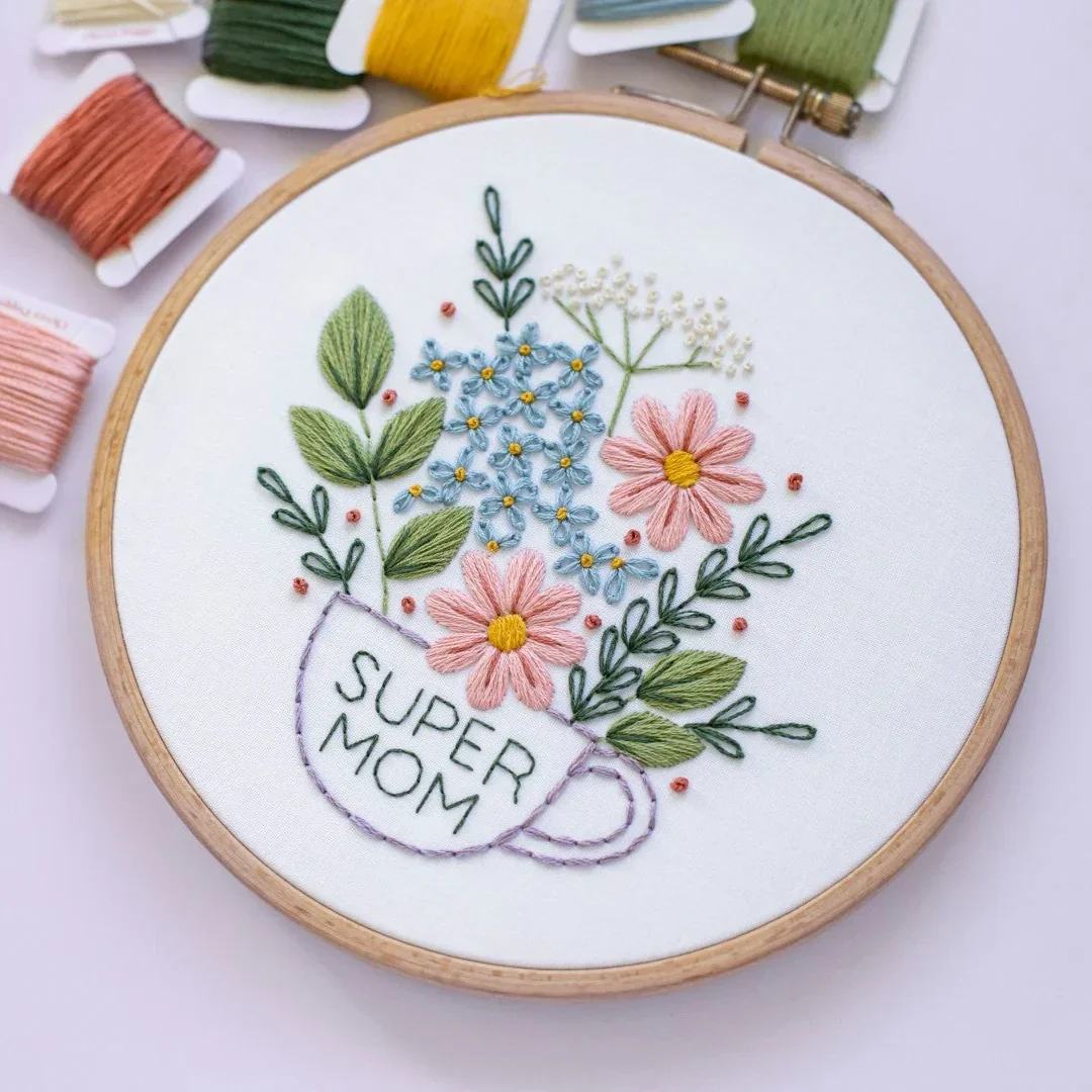 Feiere die Heldin in deinem Leben mit „Super Mom“ – einem liebevoll gestalteten Stickmuster, das all die grossartigen Mamas würdigt!